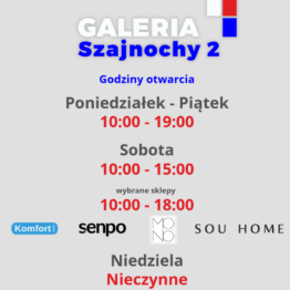 Promocje naszych sklepów Wybrane sklepy otwarte dłużej w sobotę Reklama w Multikinie NOWOŚCI! P R O M O C J A z meblami POLIPOL ! Weekend z meblami LIBRO PROMOCJA -10% Na całą kolekcje mebli !!! Promocja: „Pakiet TEMPUR® Wellness” – na SalonSnu.pl Promocja: Łóżko Tulia 2.0 do materaca za 50% ceny – SalonSnu.pl Promocja Materasso: Wybrane materace – 23%! na SalonSnu.pl